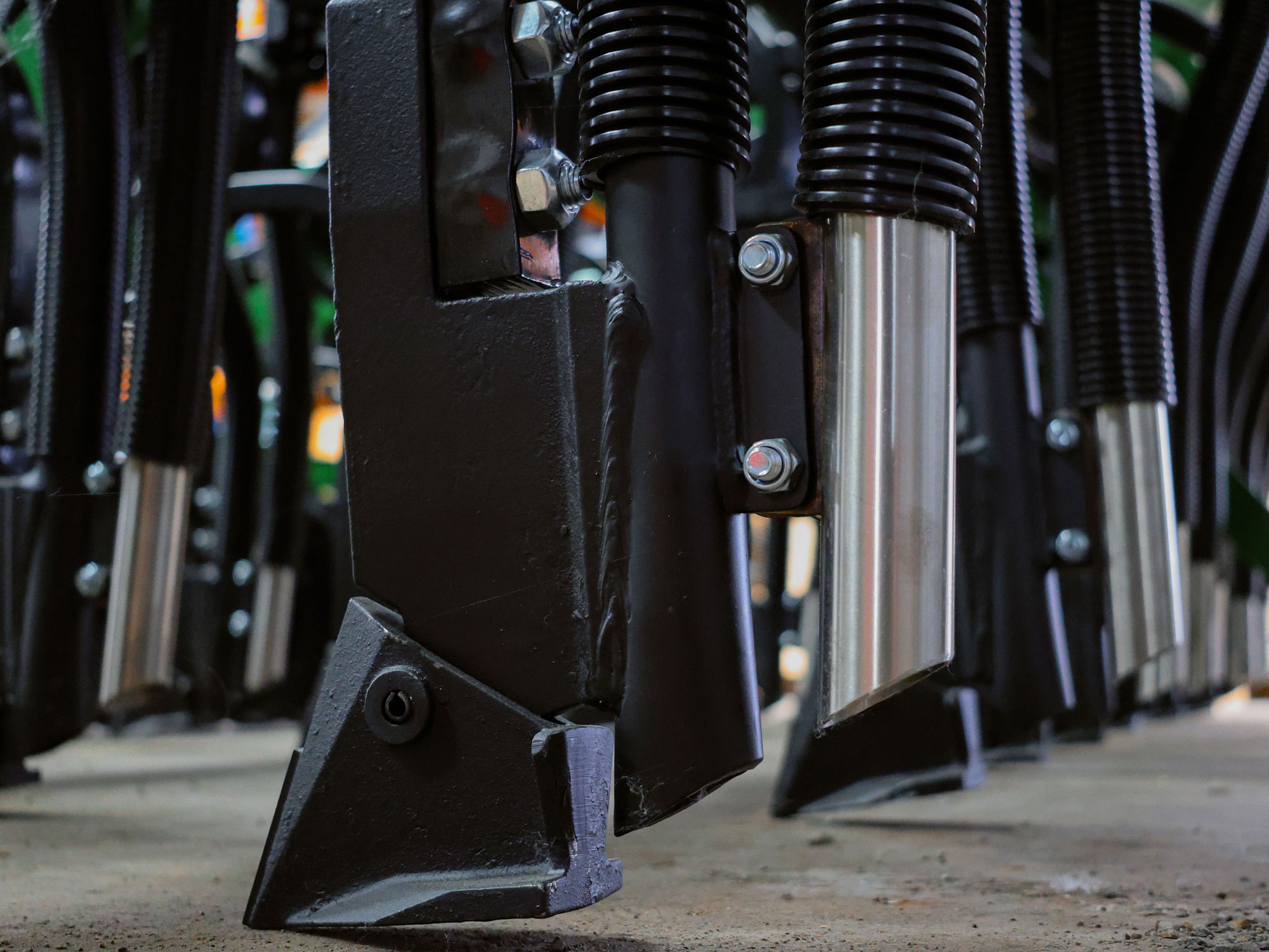 The shoe pushes aside all surface trash and prunes the roots of the existing sward when rejuvenating grassland. The chamber allows light and moisture to penetrate but retains the warmth. Because the seed is surrounded by a fine tilth, root establishment is rapid.